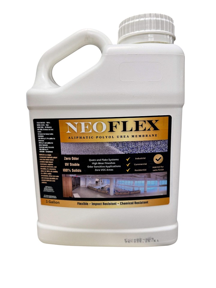 Built to resist abrasion, impacts, and harsh chemicals, NeoFLEX exhibits 100% UV stability and zero VOCs, making it suitable for sensitive indoor spaces and exterior applications alike. Its solvent-free, self-leveling formulation creates a smooth, high-quality finish that can be clear or pigmented and tailored with satin or matte additives for varied aesthetics. Compatible with a wide range of substrates — from properly prepared concrete to epoxy systems and broadcast media — NeoFLEX serves as a versatile base coat, topcoat, or standalone protective layer for residential, commercial, and industrial environments.